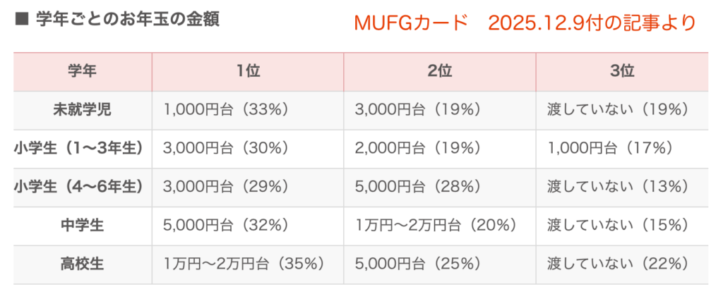 この時期、悩まれる方も多いと思われるのが、渡すお年玉の金額。私の場合は数年前、年子の姉弟に渡す金額の差別化で悩み、単純なルールを決めました。それは、お年玉金額 = 数え年 x 千円。低年齢の子供にはこの基準だと相場より多くなりますが、そこは親御さん自身が臨時収入にしていただければと。