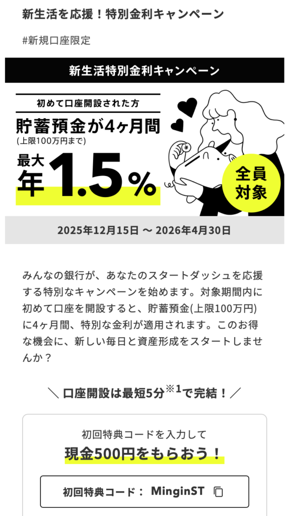 この状況だとみんなの銀行の利用は、新規口座開設特典が有効な期間と預金額だけになりそう。