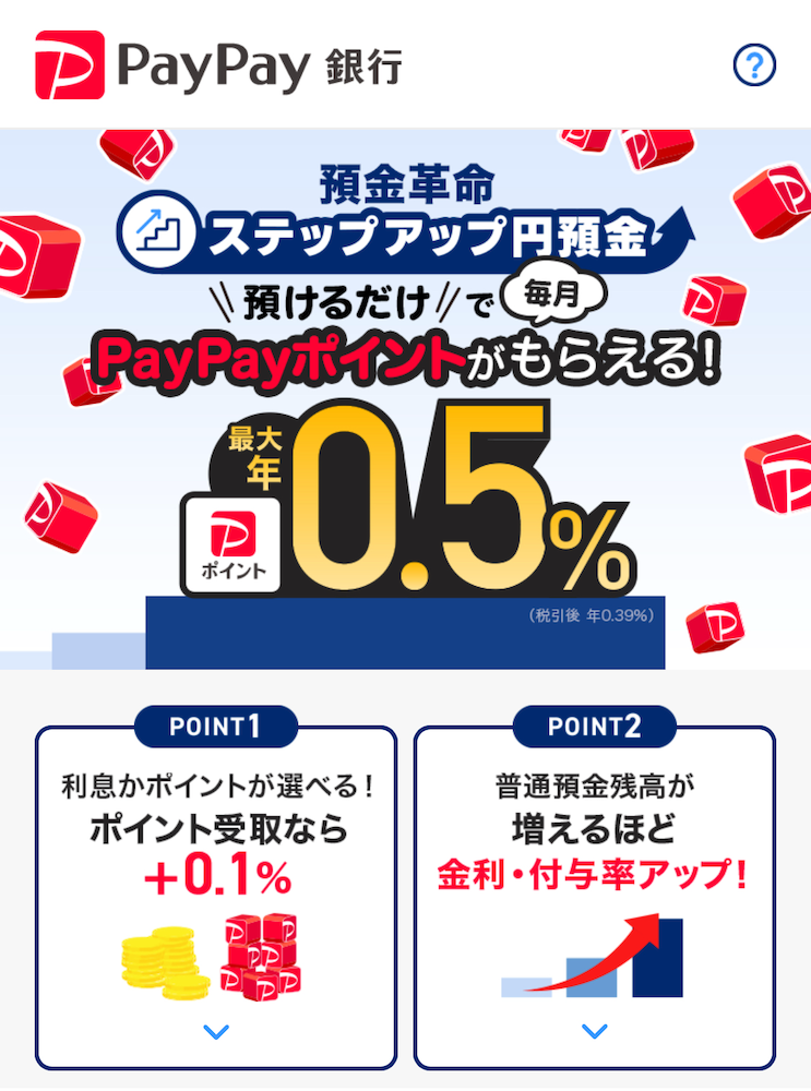 PayPay銀行の普通預金利子を、0.1%追加特典を受け年利0.5%とすべく、今月からポイント受取に変更した。先ほど銀行からのポイント付与を確認。けどその額が、従来の預金口座への利息振込の頃と変わらない?