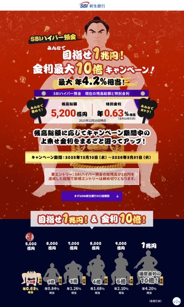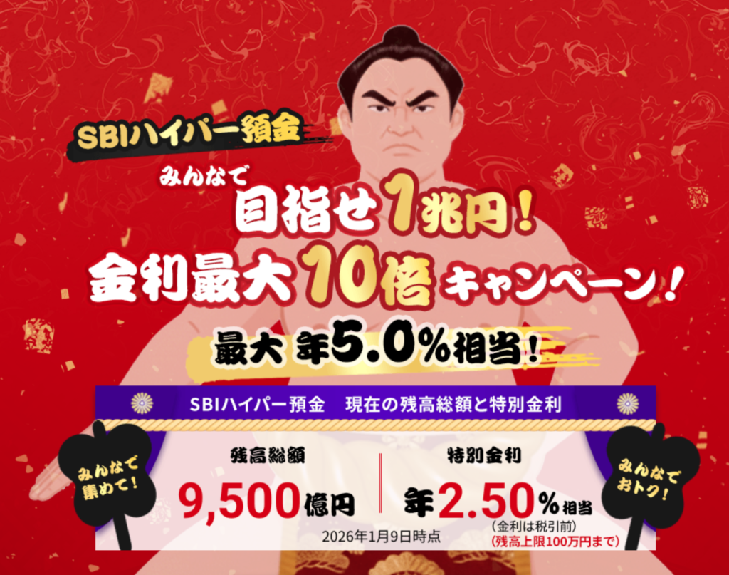 SBI新生銀行のSBIハイパー預金は、総預金残高が1兆円に達しそうな勢いですね。