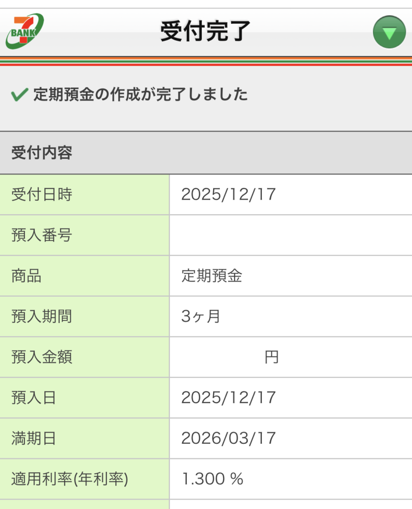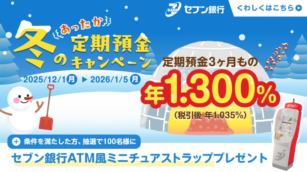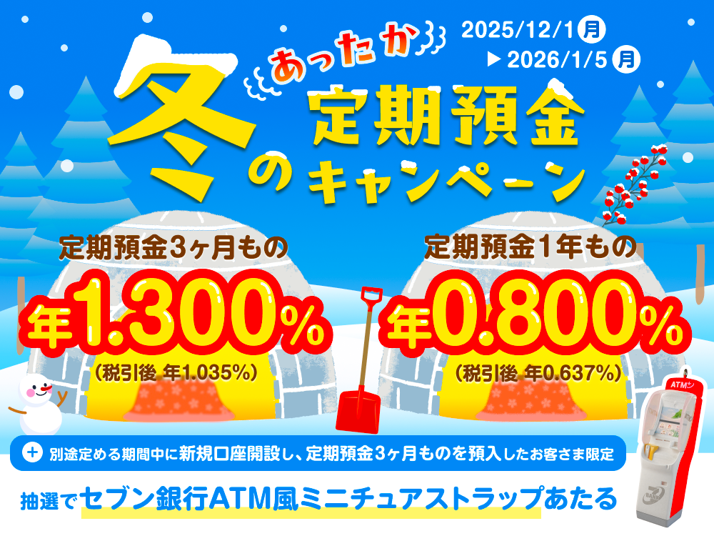 今回の解約金の預入先には、他行宛振込の手数料免除が無くて、預金引き出し時の使い勝手が悪いセブン銀行を利用しなかった。同行の冬のキャンペーン定期預金は、3ヶ月の短期で金利が年1.3%なのは魅力だったのですけどね。