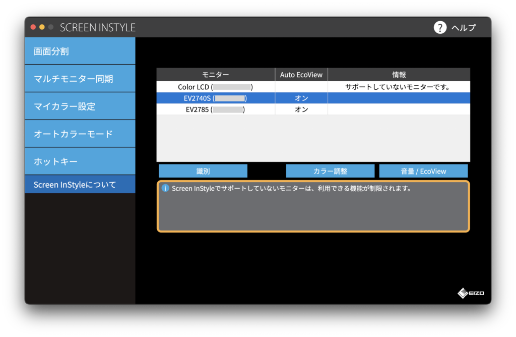 これまで2台の外付けモニターEIZO EV2785とEV2451は、画面の色味が微妙に違っていても、調整が面倒なので放置状態でした。