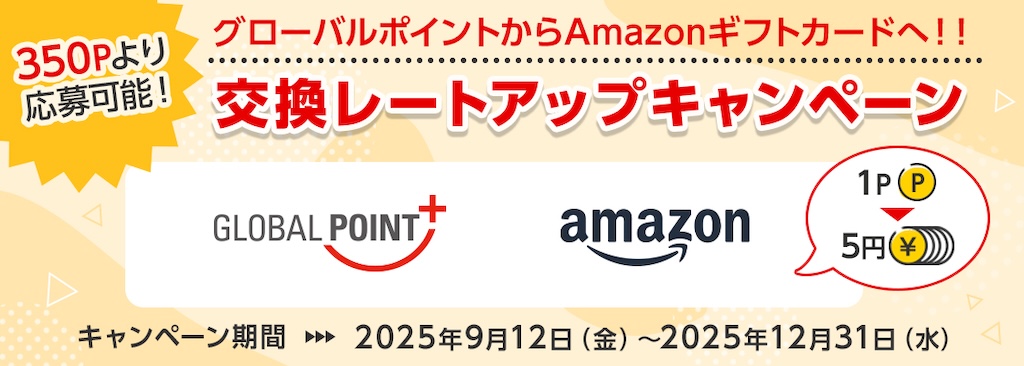 しかたなく従来通り、“グローバルポイントWallet” に1P=5円でチャージし、それでAmazon Gift Cardを購入する方法で対処。