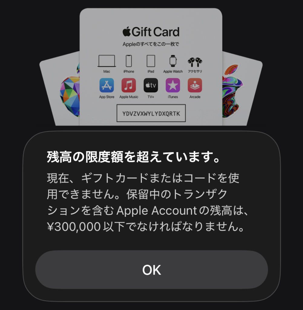 それに備えてコンビニのレジで、Apple Account残高に10万円をチャージ。今開催中のキャンペーンにて、チャージ金額10%(1万円)のApple Gift Card(コード)が貰えることを見込んでいます。