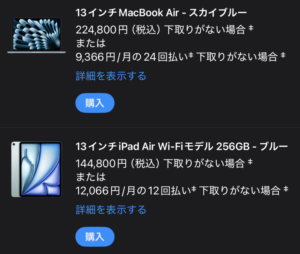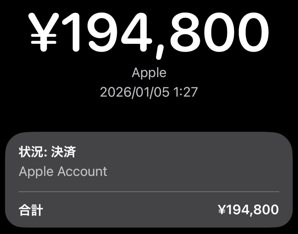 初売り開始直後に、MacBook Airを全額Apple Account残高払いで発注。その時点では、iPad Pro 13″の買い替えでiPad Airも発注する気満々。