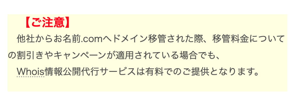 ただ、お名前.comへの移管では、自身は利用せぬけどWhois情報公開代行が無料にならないのが難点かな。