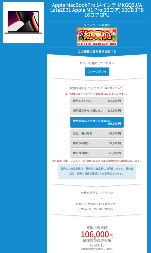 Appleの初売りにて MacBook Air 13″ M4 1TB を調達したことで、不要となったのが MacBook Pro 14″ M1 1TB 2021。本日はそれを、新宿の買取業者イオシスにて 106,000円で売却(その内の3,600円は直後にル・モンドでステーキに変身)。