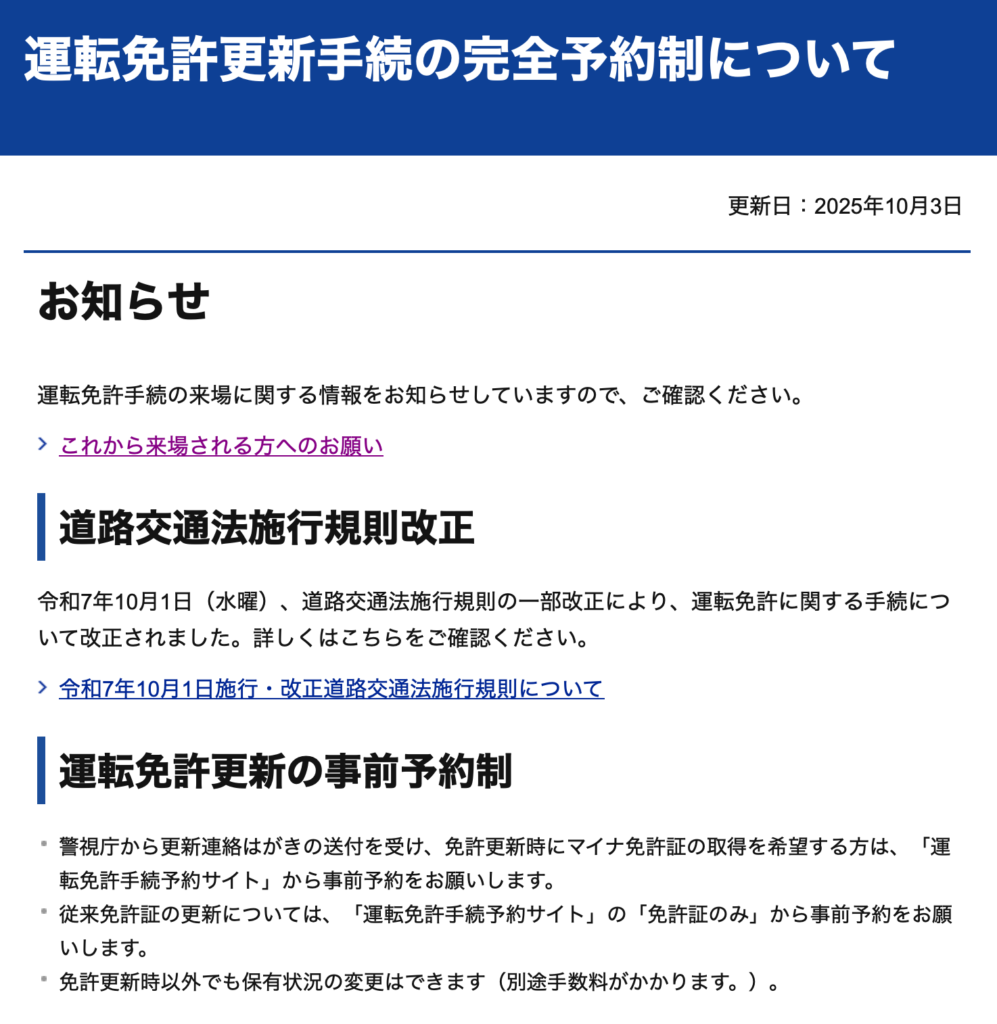 近所の警察署での運転免許更新手続き日時をWeb予約。今は免許証のみなのを、マイナ免許証との併用にします。