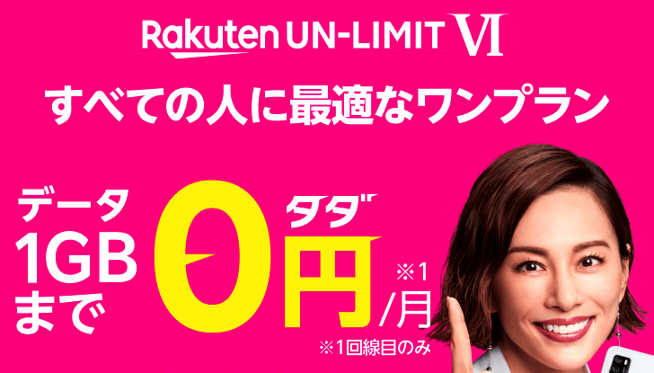 楽天モバイルRakuten UN-LIMITで、1GB迄無料は1回線目だけ。