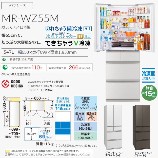 三菱MR-WZ55Mが17万円弱(リサイクル料全て含む)。ネット通販専門店でも東京ゼロエミに対応の恩恵大。