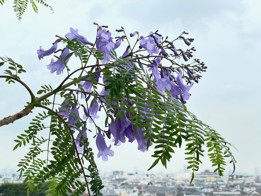 ジャカランダJacarandaの鉢植えは、住まいの外壁定期修繕の際に室内で一時保管すべく、樹高を半分にカットしたのが6年前。