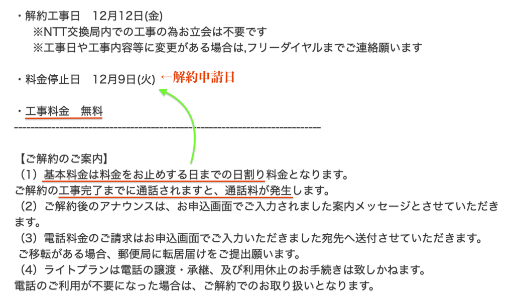 昨日解約申請したNTT固定電話/加入電話は、料金や工事に関するメールが本日届いた。