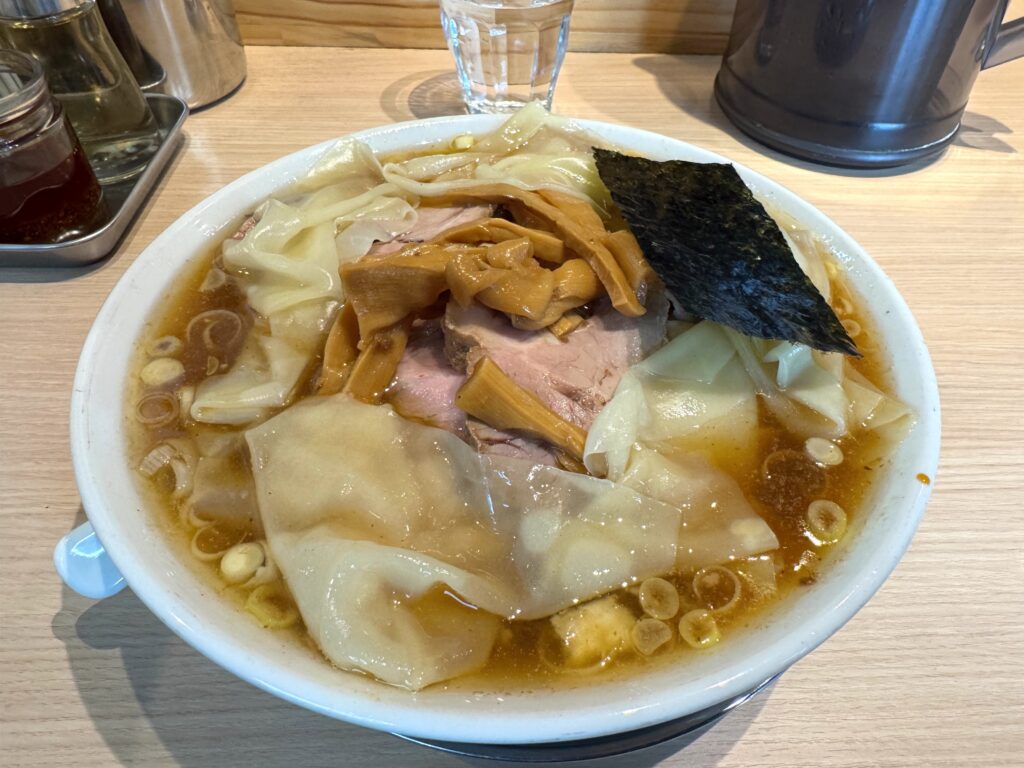 チャーシューを、他の店だと私は追加増量しません。けれど船越のモノは別。ただその美味しさが暴走気味なので、それを和らげてもらうのに、皮ワンタンはとても良い仕事をしてくれています。