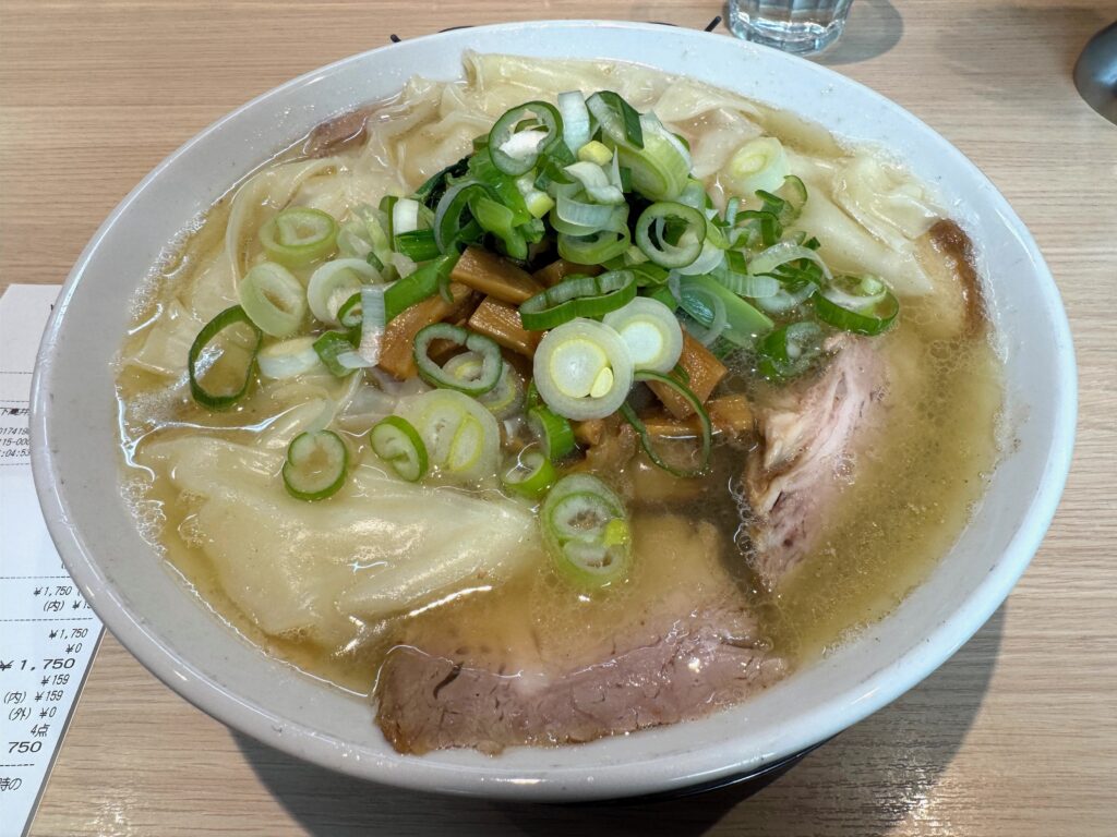 今年6杯目の桜上水 船越は、塩チャーシューメン・ハーフ+皮ワンタン5枚で1,600円。