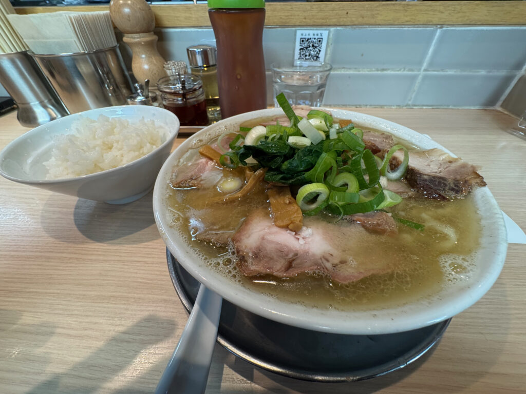 今日は、以前のように先にご飯全部を食べ切らず半分だけにし、麺を食べ切ってから残りのご飯をスープと合わせていただくスタイルにしたところ、これが大正解。食べ終わった時点での満腹度合いがベストでした。